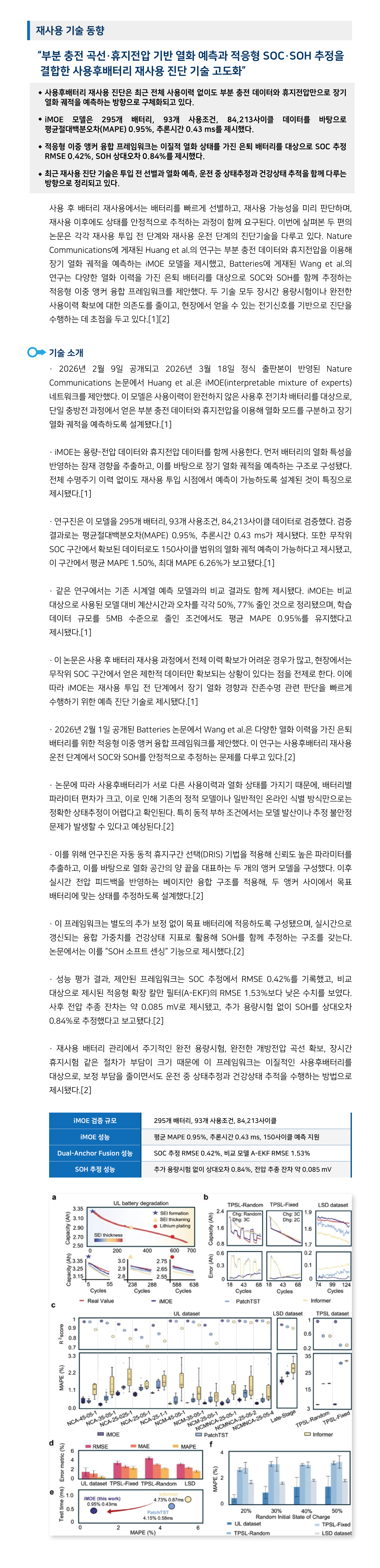 [1] X. Huang et al., “iMOE: prediction of second-life battery degradation trajectory using interpretable mixture of experts,” Nature Communications