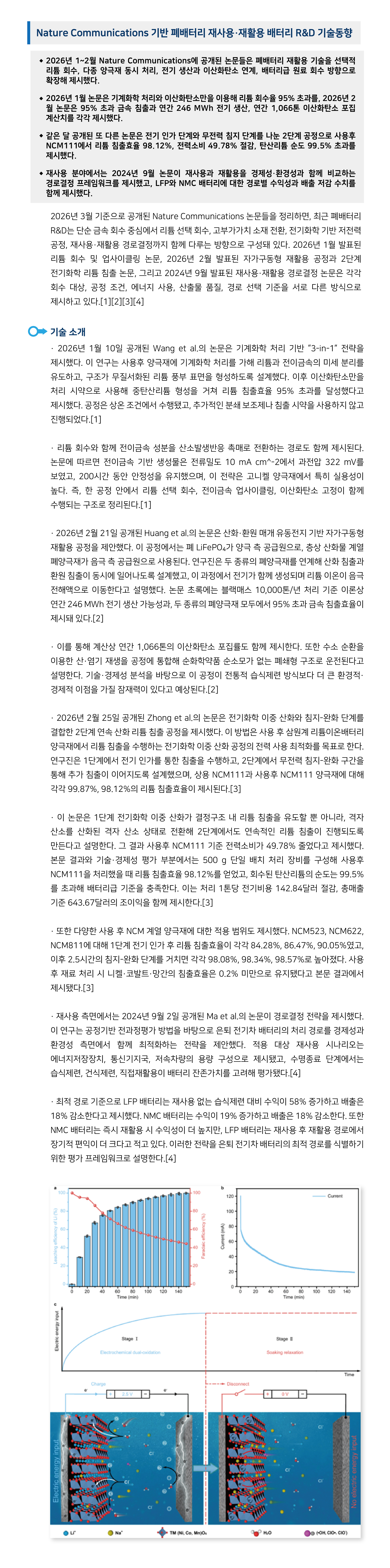 [2] Huang, S. et al., Self-driven recycling of spent Li-ion battery materials with electricity generation (Published 2026.02.21), Nature Communications.